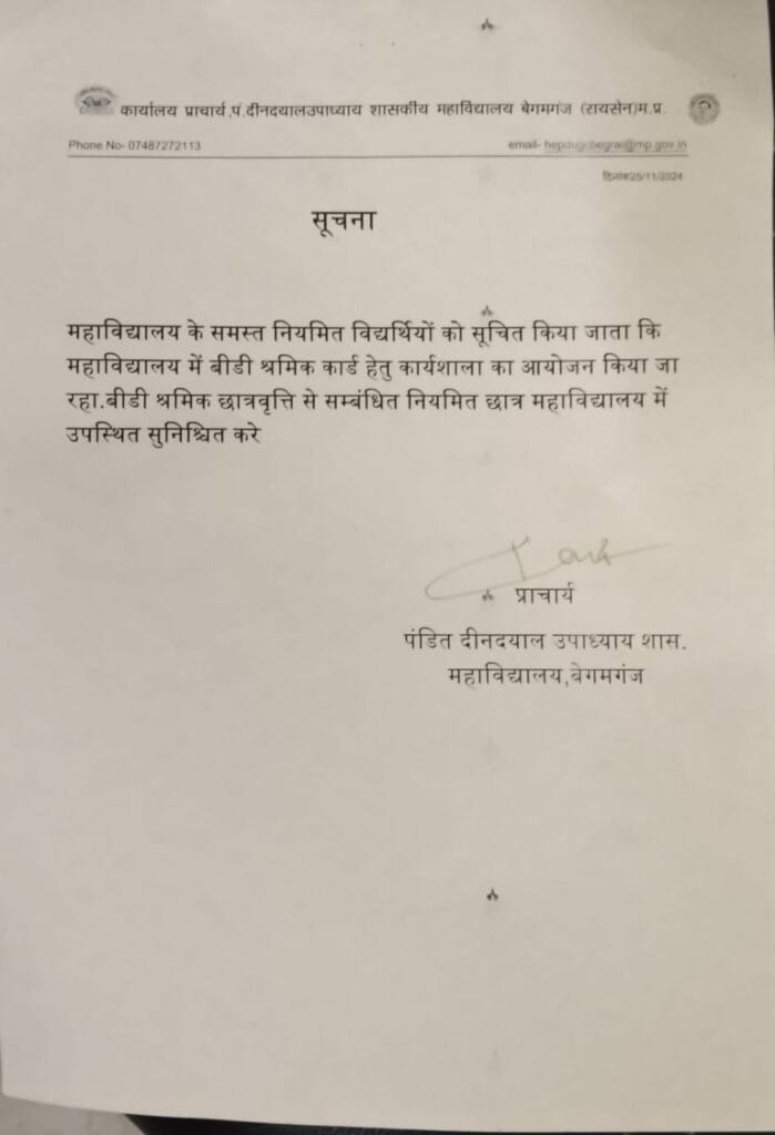 Author: Gazala PraveenPost navigationPreviousPrevious post:संविधान दिवस के अंतर्गत होने वाली प्रतियोगिताएं।NextNext post:भारतीय ज्ञान परंपरा प्रतियोगिता महाविद्यालय स्तर परिणाम एवं जिला स्तर पर आयोजित प्रतियोगिता की समय सारिणीRelated Postsमहाविद्यालय में NEP 2020 अध्यादेश 14 (1) एवं 14 (2), Swayam portal, Digilocker का प्रशिक्षण संपन्नNovember 8, 2025BA/BSc/B.Com प्रथम वर्ष सीसीई परीक्षा संशोधित समय सारणी 2025-26November 8, 2025प्रेस विज्ञप्ति- महाविद्यालय में दिनांक 01 से 03 नवंबर 2025 तक मध्य प्रदेश स्थापना दिवस समारोह के अंतर्गत विभिन्न कार्यक्रम आयोजित किए गए।November 6, 2025BA/BSc/B.Com प्रथम वर्ष सीसीई परीक्षा समय सारणी 2025-26November 4, 2025महाविद्यालय में भारतीय संस्कृति ज्ञान परीक्षा का आयोजन।दिनांक- 21/11/2025November 3, 2025प्रेस विज्ञप्ति – मध्य प्रदेश के विकास पर्यटन एवं सांस्कृतिक महत्व के स्थलों पर आधारित चित्रकला प्रतियोगिताNovember 3, 2025