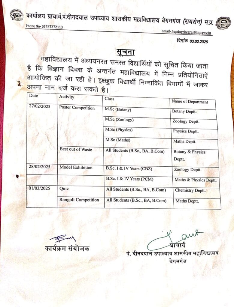 राष्ट्रीय विज्ञान दिवस से अंतर्गत होने वाली प्रतियोगिताएं