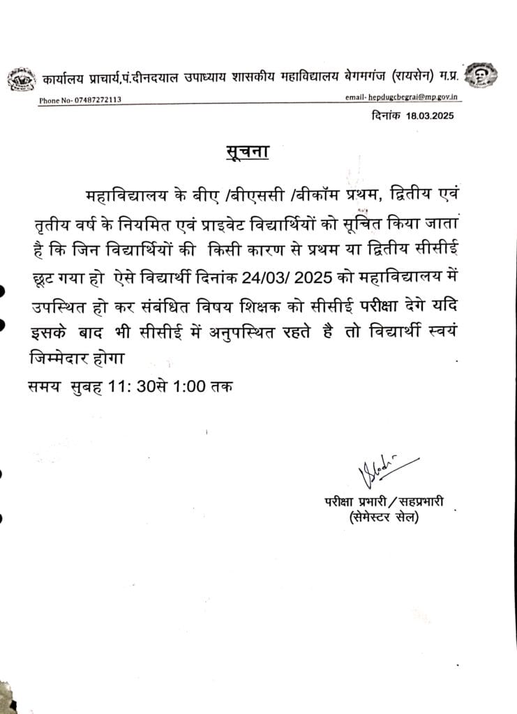 सीसीई परीक्षा (अंतिम अवसर) सूचना