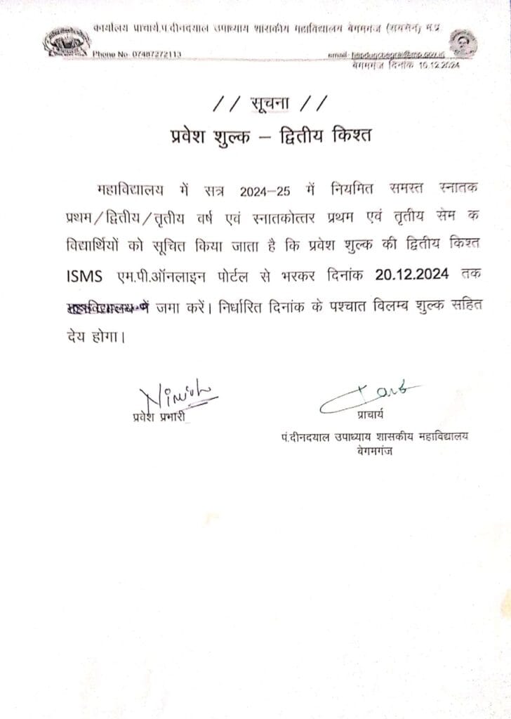 सूचना प्रवेश शुल्क द्वितीय किस्त
