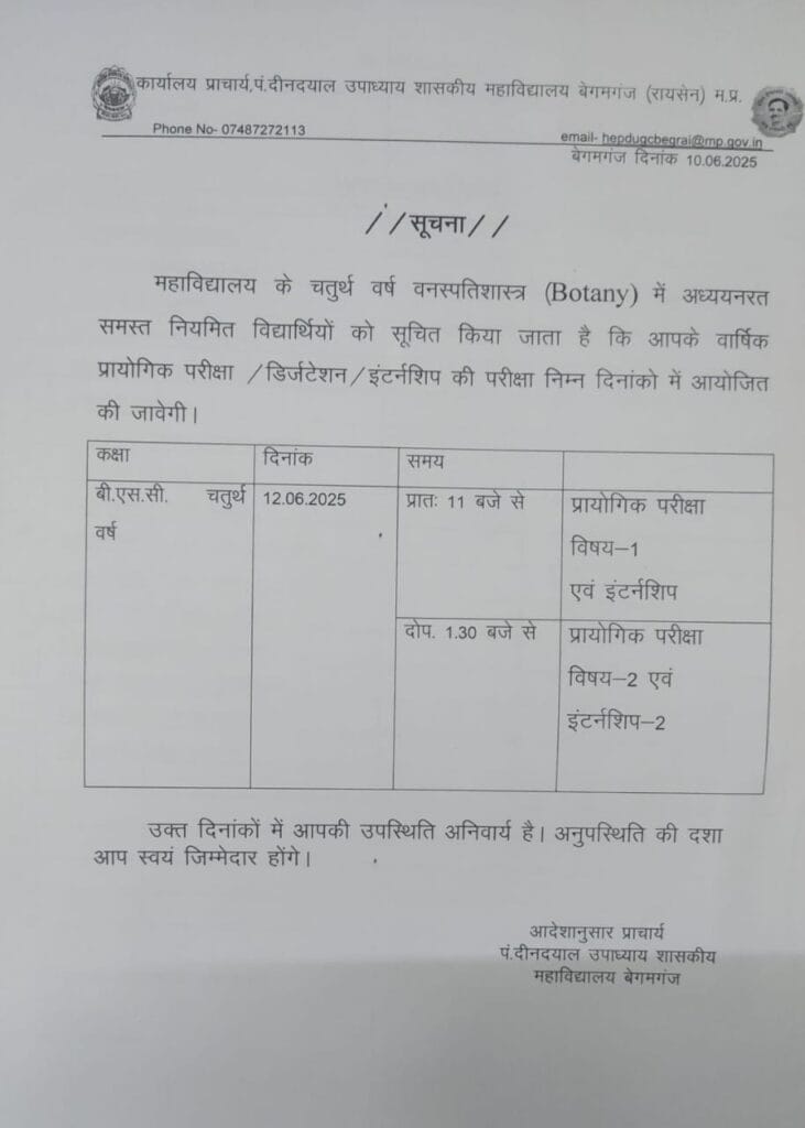 Author: Gazala PraveenPost navigationPreviousPrevious post:Fourth Year (NEP) Exam Time Table 2024-25NextNext post:महाविद्यालय में दिनांक 14.6.2025 को रक्तदान शिविर का आयोजनRelated PostsBA/BSc/B.Com प्रथम वर्ष सीसीई परीक्षा संशोधित समय सारणी 2025-26November 8, 2025BA/BSc/B.Com प्रथम वर्ष सीसीई परीक्षा समय सारणी 2025-26November 4, 2025महाविद्यालय में भारतीय संस्कृति ज्ञान परीक्षा का आयोजन।दिनांक- 21/11/2025November 3, 2025प्रथम सीसीई परीक्षा संशोधित समय सारणी 2025-26October 29, 2025अल्पावधि रोजगारोन्मुखी प्रशिक्षण कार्यक्रम समापन के संबंध मेंSeptember 27, 2025विकसित भारत यंग लीडर्स डायलॉग 2026September 25, 2025